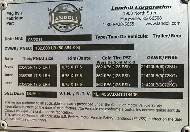 2011 Landoll 455B-50CA, 30,000 lb. Planetary Winch, Apitong Wood Decking, Wireless Remote, Cable Roller Guides, Pressure Guard Inflation, Galvanized, Fleet Maintained, Sold As Is, Inspections Welcome
